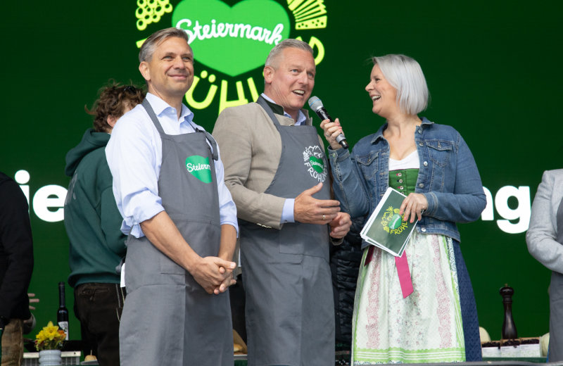 Für einen genussvollen Auftakt am Donnerstag sorgten vier Kochstationen auf der großen Bühne und zahlreiche Köch:innen. Zudem schwangen sich einige prominente Besucher:innen auch selbst hinter den Herd und kochten im Rahmen der Eröffnungsfeierlichkeiten gemeinsam. Staatssekretärin Barbara Eibinger-Miedl, Landtagspräsident Gerald Deutschmann, die Landesrät:innen Simone Schmiedtbauer, Claudia Holzer, Hannes Amesbauer, Stefan Hermann, Karlheinz Kornhäusl sowie Motorsportlegende Helmut Marko sowie Steiermark Tourismus Geschäftsführer und Organisator Michael Feiertag bereiteten unter anderem Rib Eye Boy Sandwich, Steirerburger, Krautfleckerl und gebackene Apfelringe zu. Fachkundige Anleitung kam dabei von Haubenkoch Andi Krainer aus Langenwang, die "Rib Eye Boys" Nino Sifkovits und Robert Buchberger sowie Gerhard Dragschitz von motioncooking. Komplettiert wurde das Kochensemble von Model Cheyenne Ochsenknecht und Silvia Loidolt, Obfrau der Erlebnisregion Graz und Wirtin in Semriach.