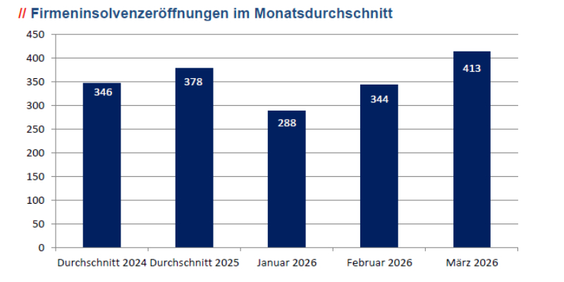 Die monatliche Entwicklung zeigt ein uneinheitliches Bild. Während Jänner und Februar noch auf eine gewisse Stabilisierung hindeuten, lässt der März mit einer überdurchschnittlich hohen Zahl an Verfahren Zweifel an einer nachhaltigen wirtschaftlichen Erholung aufkommen.