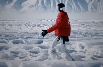 Roboter stampfte Olympia-Logo in Gebirgsschnee