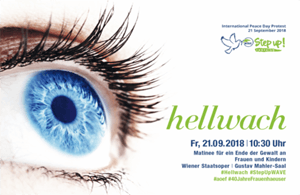 Anlässlich des Internationalen Tag des Friedens am 21.September lädt der Verein Autonome Österreichische Frauenhäuser (AÖF) zur HELLWACH-Matinee in die Wiener Staatsoper „für eine Ende der Gewalt an Frauen und Kindern“. Ziel von HELLWACH ist es alljährlich, auf das enorme Ausmaß an Gewalt gegen Frauen und Kinder und sowie auf das Recht auf ein Leben in Frieden für alle Menschen aufmerksam zu machen.