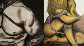Lisa Grüner, die sich mit ihren bunten Aktmalereien bereits einen Namen gemacht hat, setzt sich in einem eigenen Zyklus mit dem Thema Grenzen auseinander. Um diese spürbar zu machen und darzustellen, setzt sie das Seil ein und lässt es wirken.