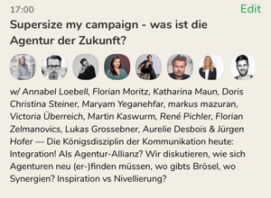 Unter der Moderation von Annabel Loebell, LOEBELL NORDBERG und Jürgen Hofer, HORIZONT, renommierte Branchenvertreter, darunter Rene Pichler Aandrs, Markus Mazuran WIEN NORD Serviceplan, Kathi Maun DODO, Florian Zelmanovics ZEL, Doris Christina Steiner Ketchum Publico, Victoria Überreich Digireich, Maryam Yeganehfar Yamyam Event Production, Martin Kaswurm Chaka2 und Lukas Grossebner, sowie auf Unternehmensseite Aurelie Desbois Unibail-Rodamco-Westfield (SCS und Donau Zentrum) und Florian Moritz BENE.