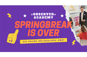 Der Academy-Workshop in englischer Sprache findet am 22. April von 15 bis 18 Uhr über Zoom statt und kostet für »OBSERVER«-Kunden € 180,- (regulär € 220). Die Teilnehmerzahl ist auf 30 Personen begrenzt.