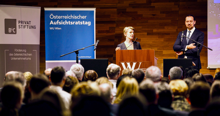 Anette Klinger, Geschäftsführung IFN Beteiligungs GmbH (Internorm), Herbert Ortner, Vorstandsmitglied B&C Privatstiftung, und Herbert Kasser, Generalsekretär im BMK, gehen der Frage nach, was Unternehmen für die nächsten zehn Jahre stark macht und wie der Aufsichtsrat hier einzubinden ist und unterstützen kann. Alfred Gusenbauer, Vorsitzender des Aufsichtsrats der STRABAG SE, Signa Prime und Signa Development AG, diskutiert mit den Teilnehmern an der WU, welche Wirkungsmacht und Gestaltungsmöglichkeiten der Aufsichtsratsvorsitzende in international tätigen Unternehmen tatsächlich besitzt.