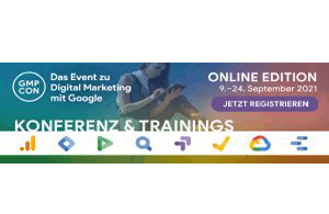 Vom 9.-24. September 2021 findet bereits zum dritten Mal das größte Fachevent rund um alle Module der Google Marketing & Cloud Platform im deutschsprachigen Raum digital statt. Die GMP Con versammelt internationale Experten und bietet in Form von Trainings, Bootcamps und innerhalb der Conference Week Know How und Insights aus erster Hand – für Einsteiger und erfahrene Anwender.