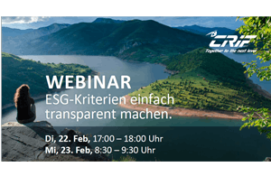 Im Webinar live am Dienstag, 22. Februar, 17:00 Uhr und Mittwoch, 23. Februar, 8:30 Uhr wird die neue ESG Transparency Plattform von CRIF vorgestellt. Sie ermöglicht allen Unternehmen ihre ESG-Kriterien einfach selbst zu evaluieren und transparent zu machen.