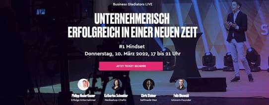 "Unternehmer des Jahres" und TV-Investor ("2 Minuten 2 Millionen") Philipp Maderthaner öffnet den Zugang zu seinen persönlichen Vorbildern, Wegbegleitern und Mentoren. Mit "Business Gladiators Live" startet er am 10. März von 17 bis 22 Uhr einen einzigartigen Online-Event.