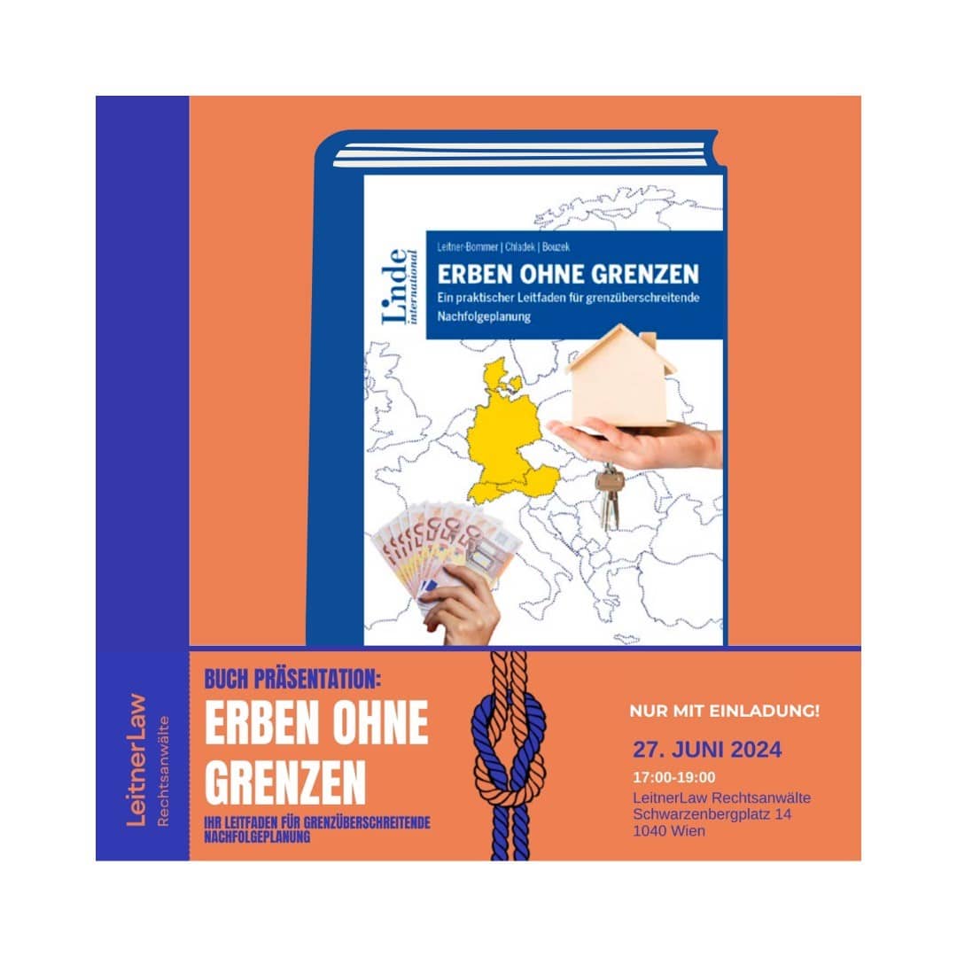 LeitnerLaw Rechtsanwälte lädt am 27. Juni 2024 zur geschlossenen Buchpräsentation "Erben ohne Grenzen" in ihren Kanzleiräumlichkeiten am Schwarzenbergplatz in Wien ein. Die Veranstaltung steht unter dem Motto "Fallstricke bei der grenzüberschreitenden Nachfolgeplanung" und bietet spannende Impulsvorträge der Buchautor:innen.