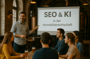 Thema des Abends ist "SEO & KI gezielt einsetzen und als Immobilienprofi sichtbar werden", präsentiert von Sebastian Prohaska (Digitalagentur ithelps).