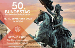 Vom 17. bis 19. September 2025 bringt der Fachverband der Immobilien‑ und Vermögenstreuhänder der WKÖ führende Expert:innen und junge Fachkräfte in Wien zusammen, unter dem Motto "Beyond Crisis: Die Renaissance der Immobilienwirtschaft" treffen einander rund 350 Immobilienprofis zur Weiterbildung und zum Netzwerken.